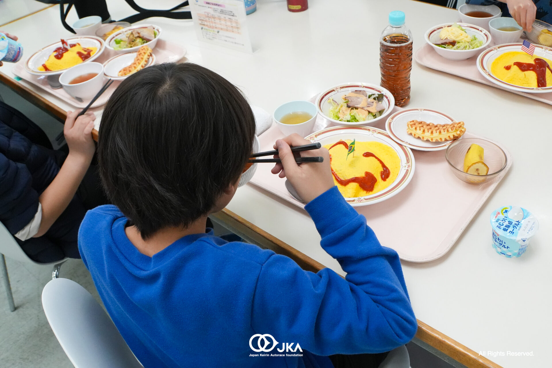 候補生たちと同じメニュー(特別にお子様ランチ!)で昼食をともにした後は、自転車安全動画を視聴。